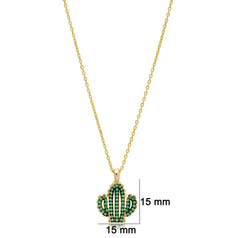 Cactus Design Emerald Stone Charm Pendant Turkish Handmade 925 Sterling Silver Jewelry