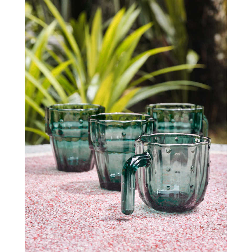 Cactus Modern Design Stackable Glass Tumbler Cups Set 4 Space Saving Durable Heat Resistant Drinkware Home Cafe Parties Logo