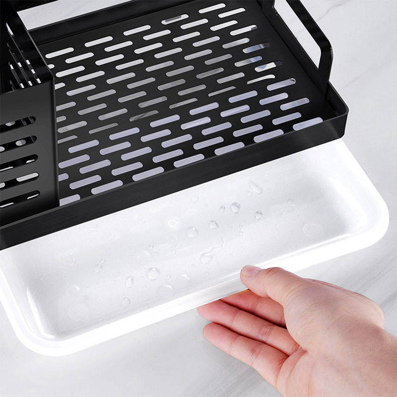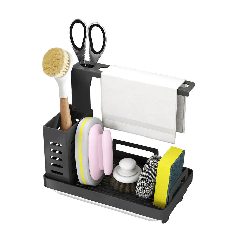Caddy Bathroom Kitchen Countertop Storage Rack Organizer Knives Spoons Soap Brush Sponge Holder with Drain Tray