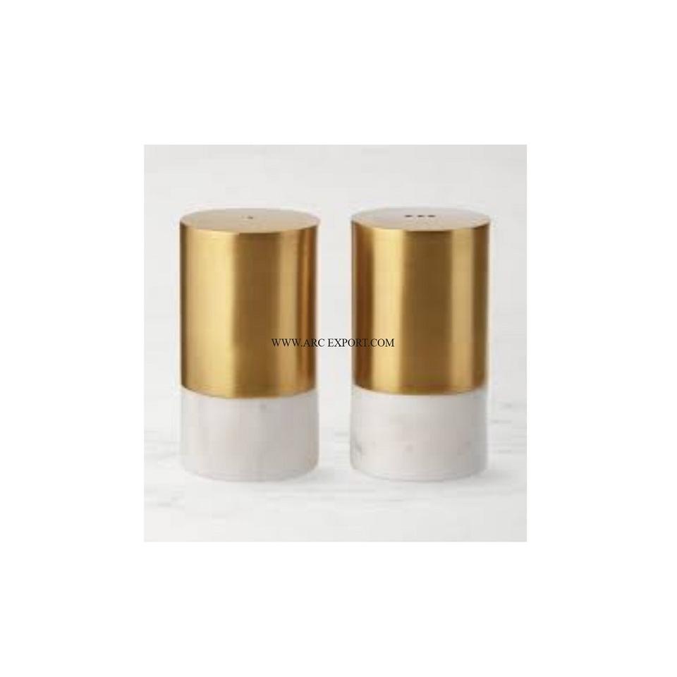 Cafe and Restaurant Table Top Salt and Pepper Set of 2 Metal and Marble Material Table Decorative Classic Salt and Pepper Set