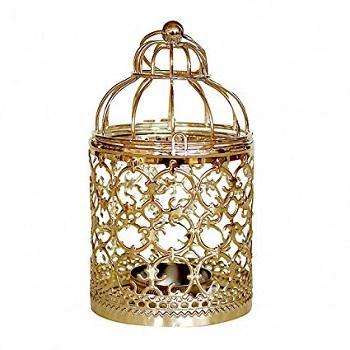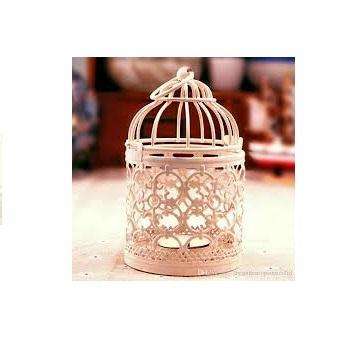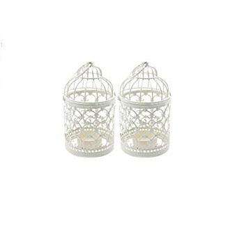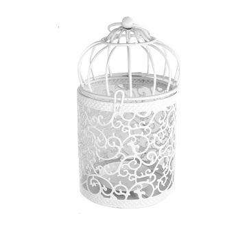White Metal Cage Lantern Dimmable Hanging Outdoor Light with Elegant Candle Design Home Decorative Candle Lantern