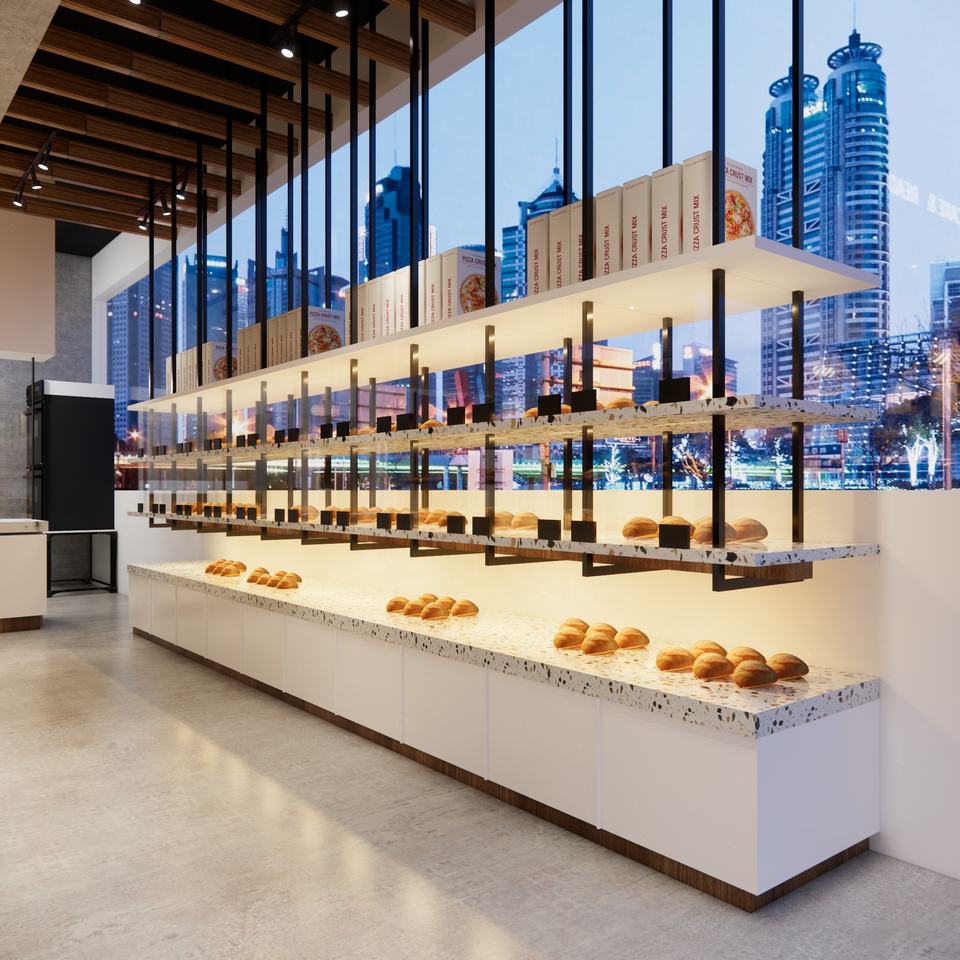 Cake Bread Shop Design Glass Display Stand Custom Bread Dessert Display Cabinet Wall Shelves Wall Showcase