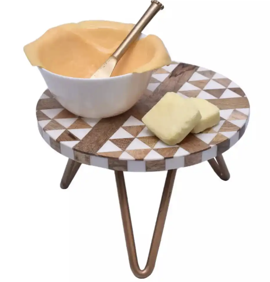 Mango Wood and Aluminum Metal Cupcake Stand with Silver Color Home Wedding Party Dry Items Decoration Cake Tools