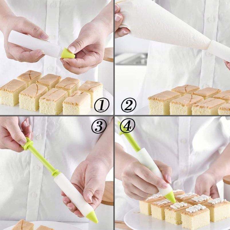 Cake Decorating Pens Kit, Silicone Food Writing Pen with 4 Patterns of Tips Cookie Pastry Decorating Pens