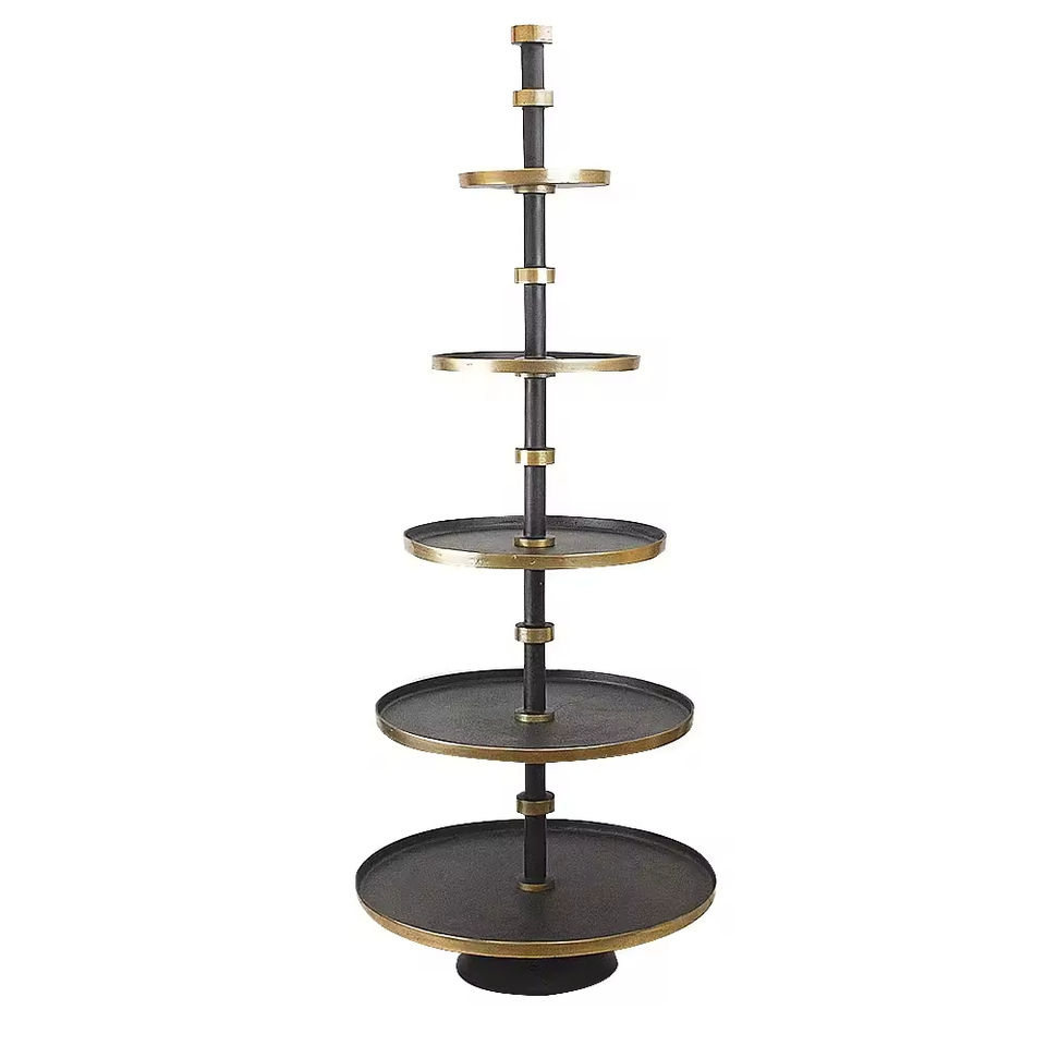 Cake Serving Tool for Party Events Decor New Metal Display Stand With 4 Tier Wedding Cake Decoration Serving Tray With Gold Rim
