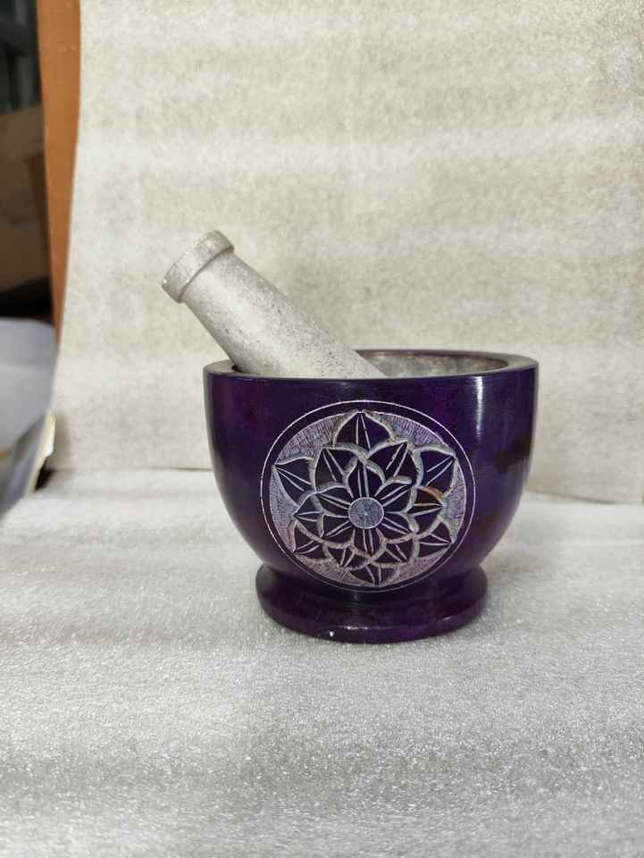 Calcatta Violet Marble Mortar and Pestle Set Eco-Friendly Kitchen Spice Grinder with White Grey Natural Stone