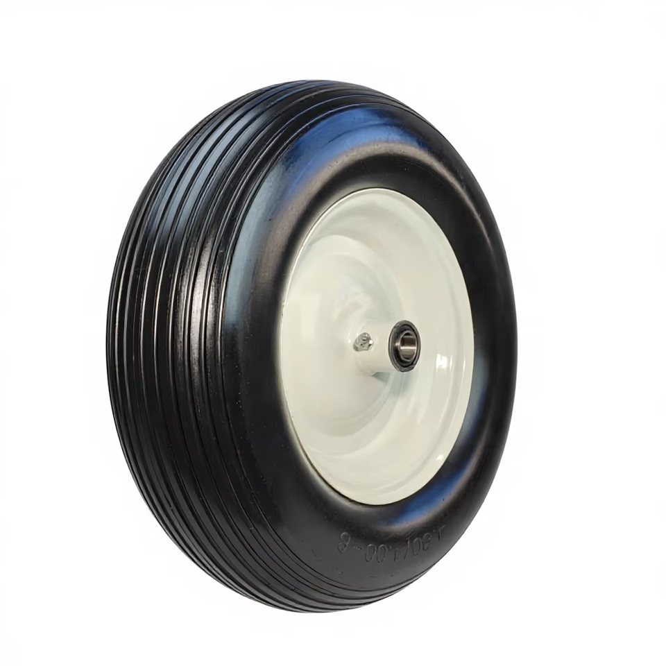Caldwell Made Thailand 16" 4.00-8 PU Foam Ribbed Tread Flat Free Wheel Precision Sealed Bearings for Wheelbarrow Sprayer Cart