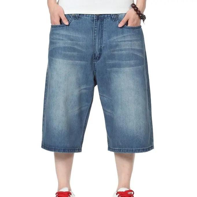 OEM Men's Custom Denim Shorts Breathable Knitted Calf-Length Jeans Pants for Outdoor Wear Knee-Length