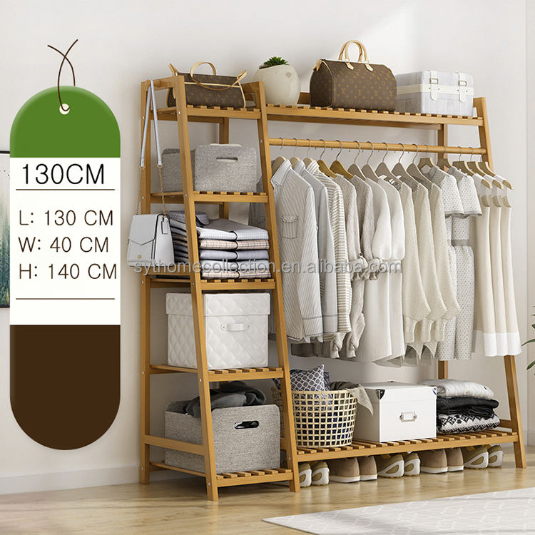 Calm Order SYT Natural Bamboo Clothes Rack for Wardrobe Corner Area Multi Layer Storage Shelf for Bedside Nook