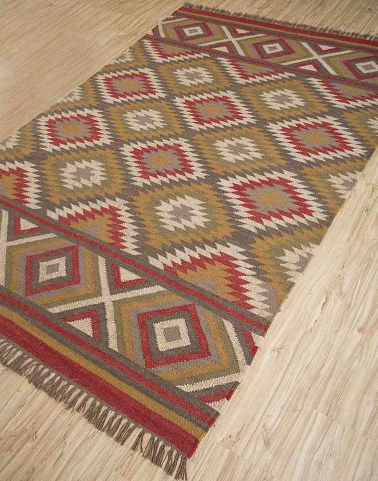 Calm and Earthy Decor Custom Hand Woven Jute-Woolen Kilim Rugs for Living Room Bedroom & Study