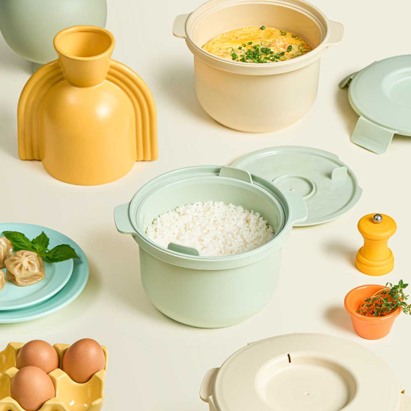 Calo Bowl Double Lid Low Carb Rice Maker Utensils PP Material Dishwasher & Microwave Safe Lightweight