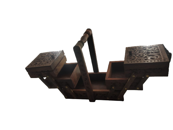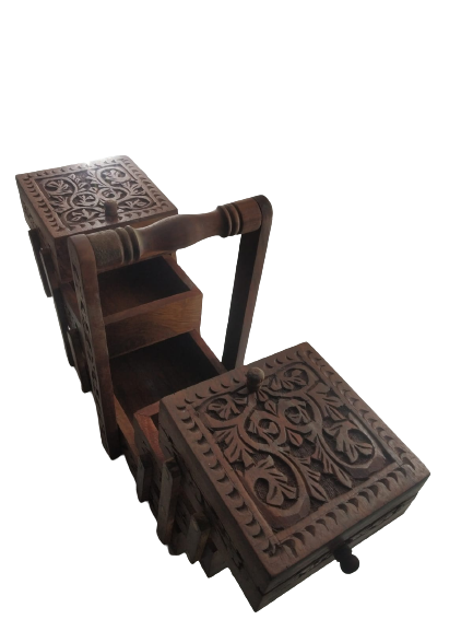 Calvin Handicraft Nautica Beautiful Engraved Flowers Kendal Huge Wooden Jewelry Box Case Storage Wedding Gift for