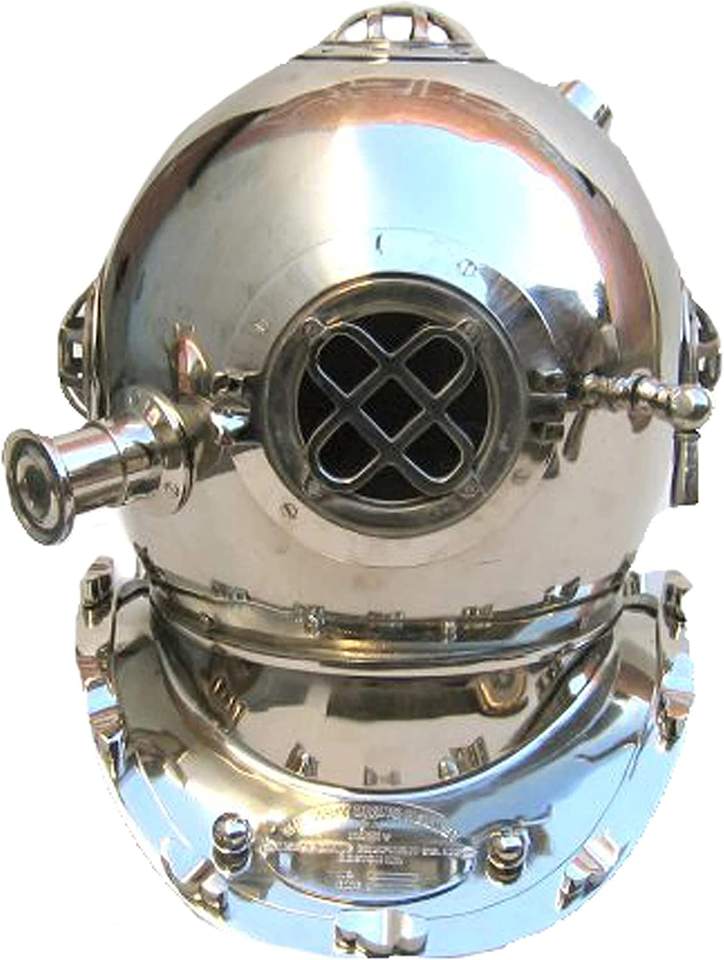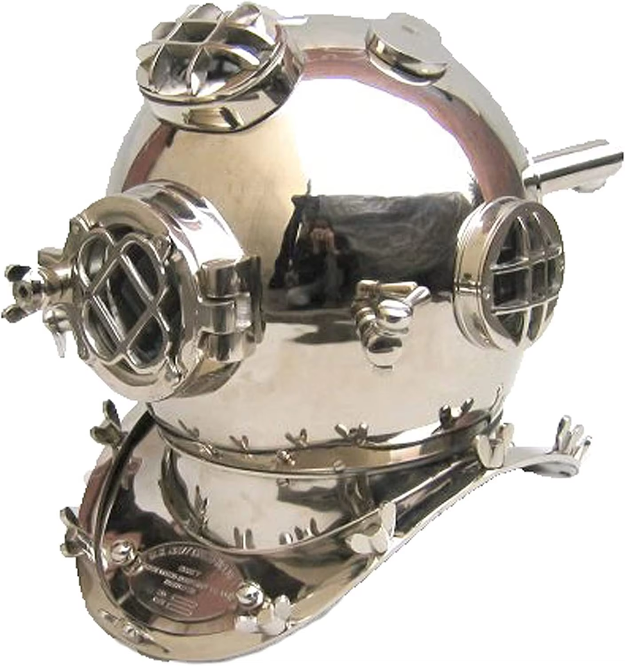 Calvin Handicrafts" Vintage Marine Divers Helmet Chrome 18" Scuba Diving Helmet V Mark U.S. Navy Diving Helmet