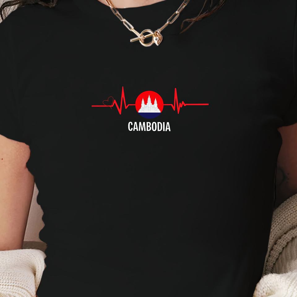 Cambodia heartbeat design women's fashion short t-shirt