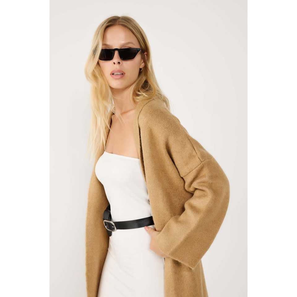 Camel Chic Chic Crocheted Long Knit Cardigan Casual Print Pattern for All Seasons Spring Summer Autumn Winter