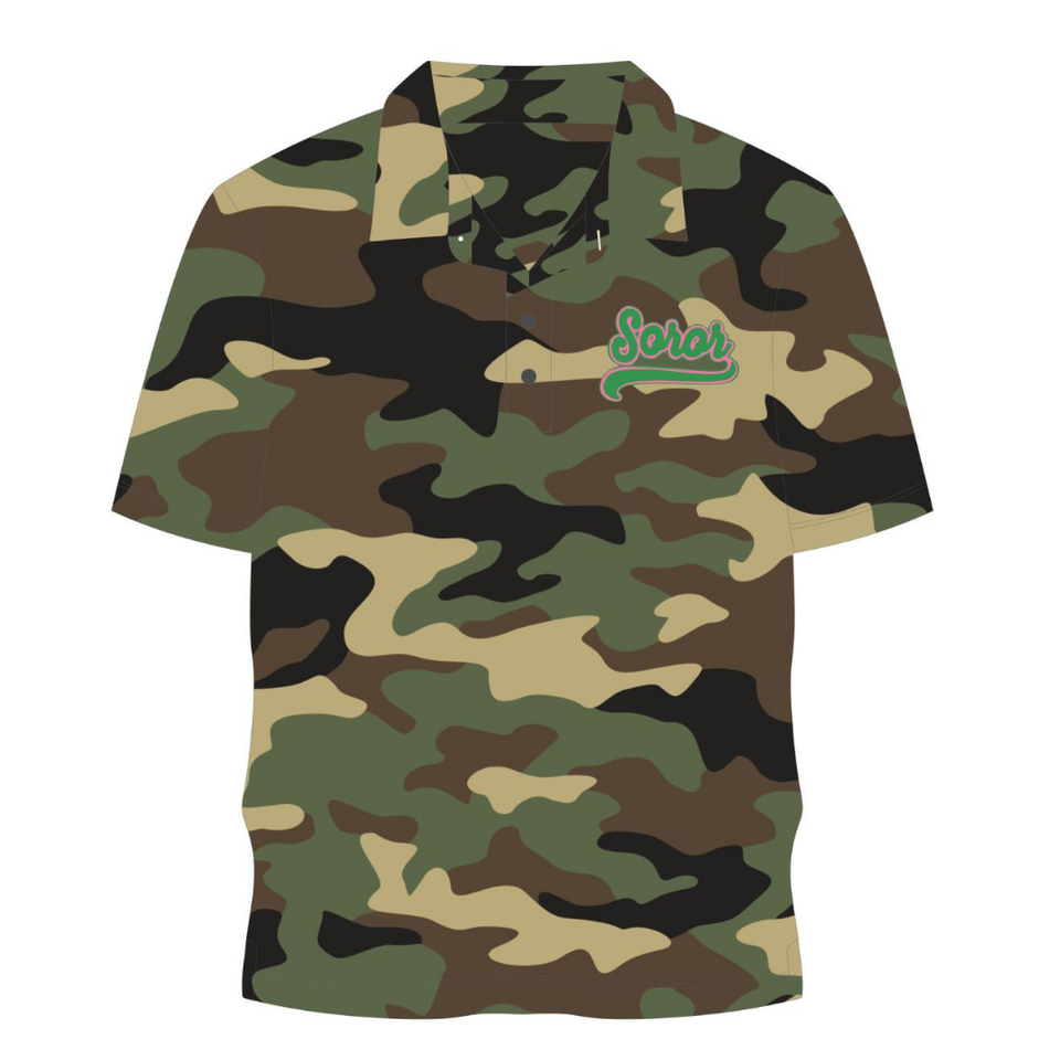 Camo 08 Soror Polo Shirt Greek Sorority Womens Pink & Green College Sisterhood Stylish Casual Polo Apparel