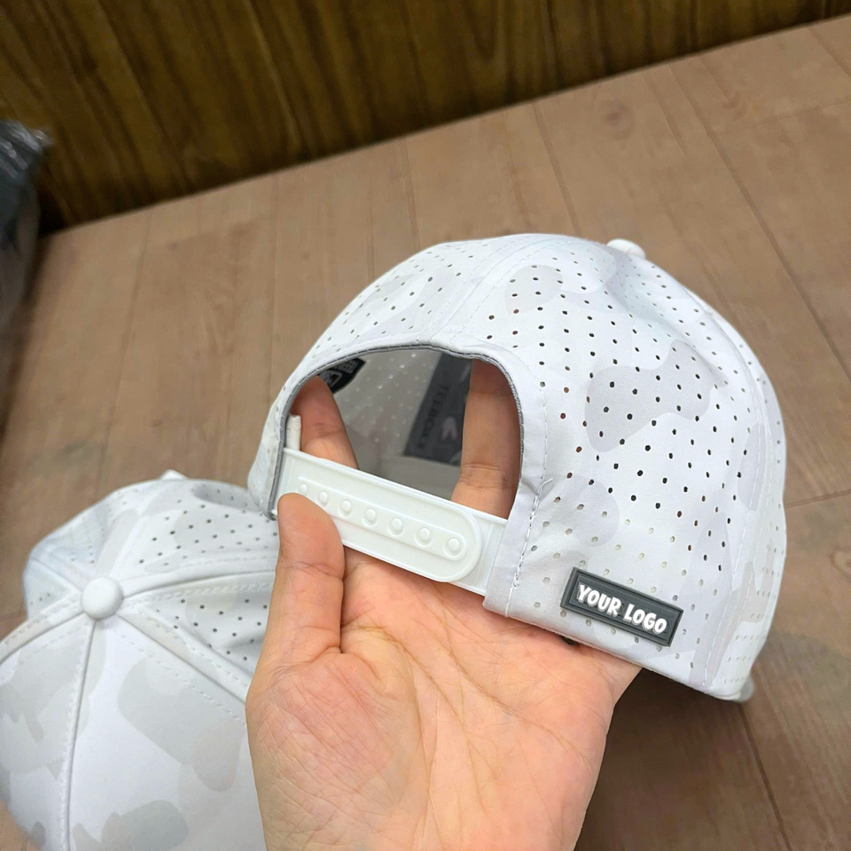 Camo Hat 5-Panel Custom Baseball Caps Rubber PVC Logo On Patch Laser Cut Hole Waterproof Sport Camouflage Golf Hats Curved Brim