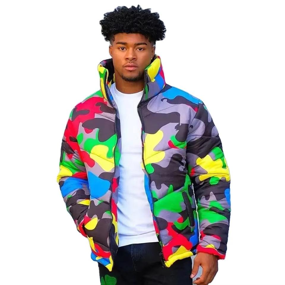 Camo Print Puffer Jacket For Men Custom Logo Winter New Puffy Men Bread Suit Oversized Bubble Coat Puffer Down Jacket for Men