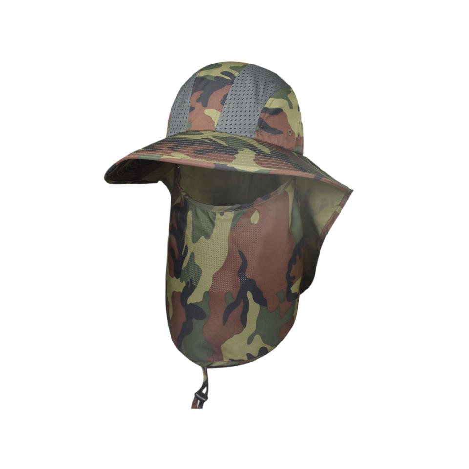 Camouflage Polyester Adjustable Breathable UV Mesh Wide Brim Sun Shade Beach Hat With Face Neck Flap for Outdoor Hiking & Garden