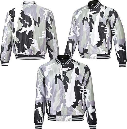 Product name:Camouflage Varsity Satin Baseball Jacket