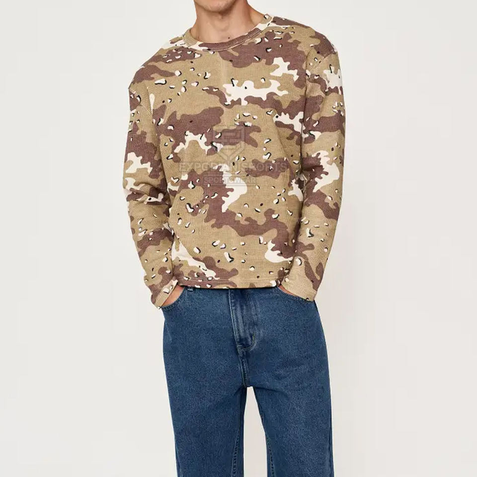 Camouflage T-Shirt Custom Print Full Sleeve Polyester/Cotton Eco-Friendly Breathable Casual Wear Tee for Gym and Outdoor Use