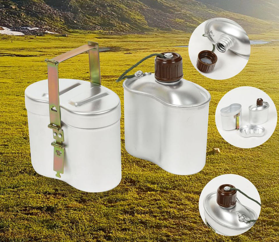 Camping Canteen Set, Portable Aluminum Kettle Kit With Cup and Cover, Outdoor Camping Cookware Mess Kit