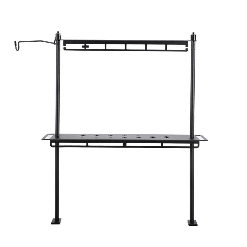 Camping Desktop Double Layer Shelf Aluminum Alloy Lightweight Folding Table Frame Outdoor Camping Table Lamp Hanger