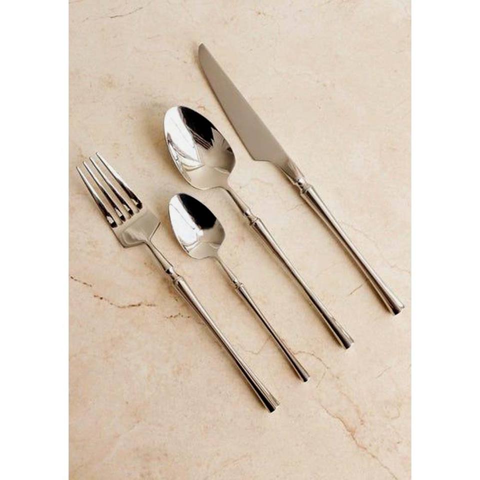 Camping Folding Design Cutlery Set Stainless Steel Straw Fork Spoon Set New Luxury Design Silver Matte Finished Portable Handle