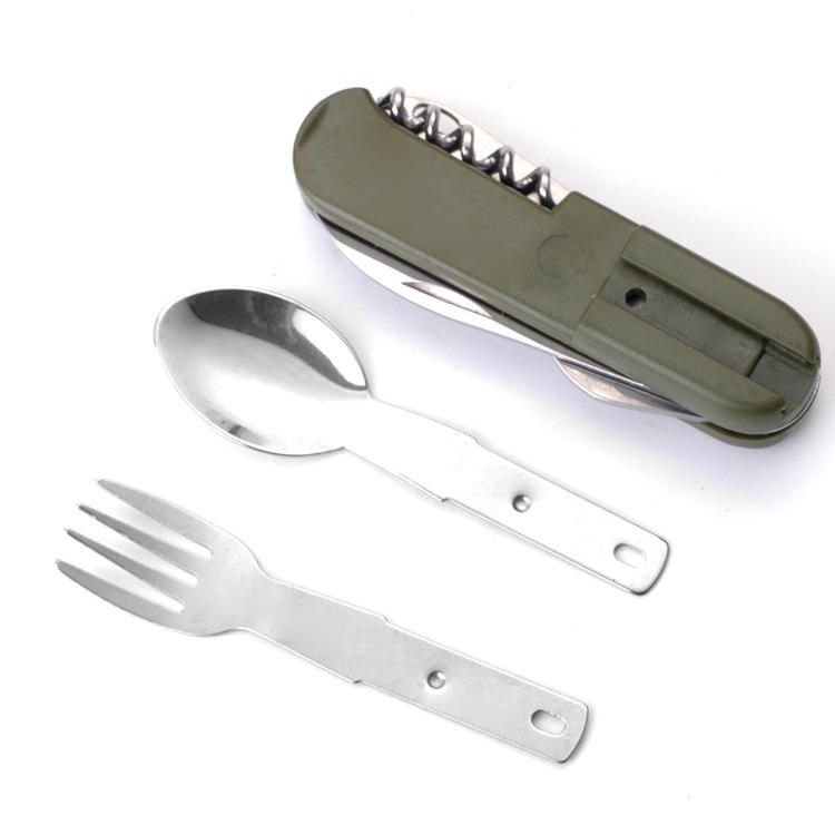 Camping Multi Functional Folding Knife Fork Spoon Set Portable Outdoor Cutlery Kit Rectangular PP Material XR906668