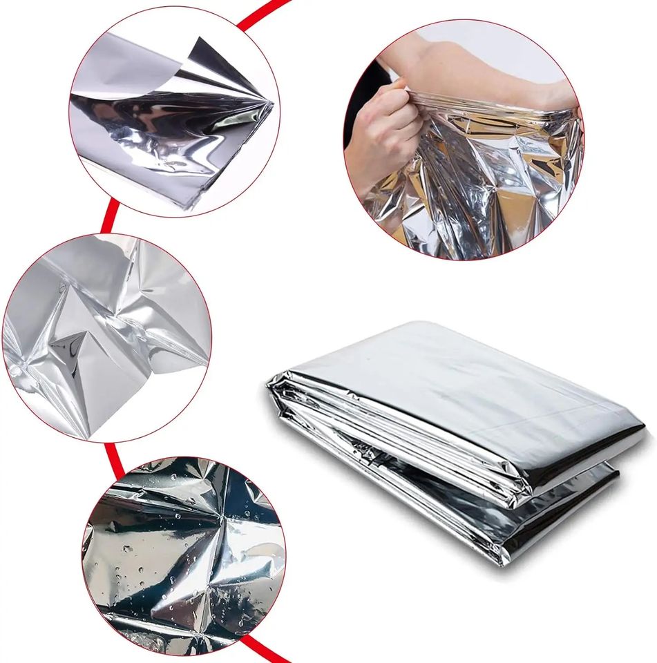 Can Customize Size Aluminum Foil Lifesaving Polyester Film Insulation Blanket PET Gold/silver Emergency Blanket