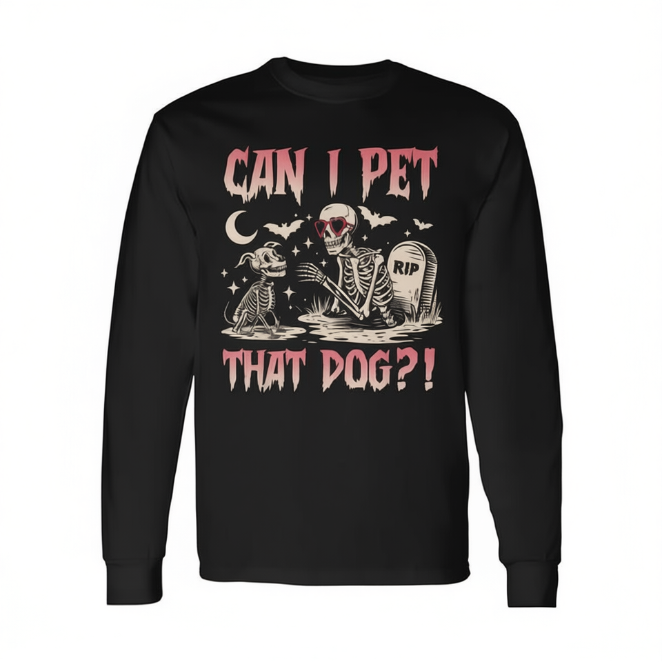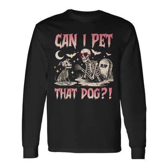 Can I Pet That Dog Skeleton And Dog Halloween Costume Long Sleeve T-Shirt
