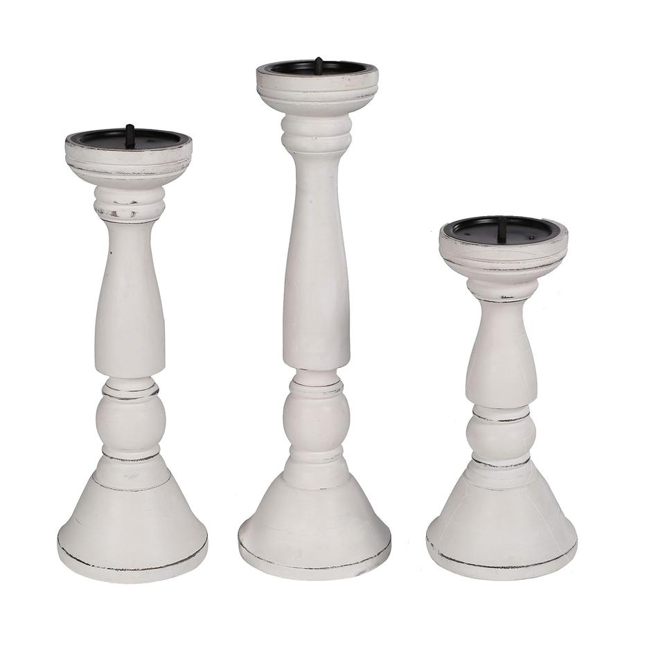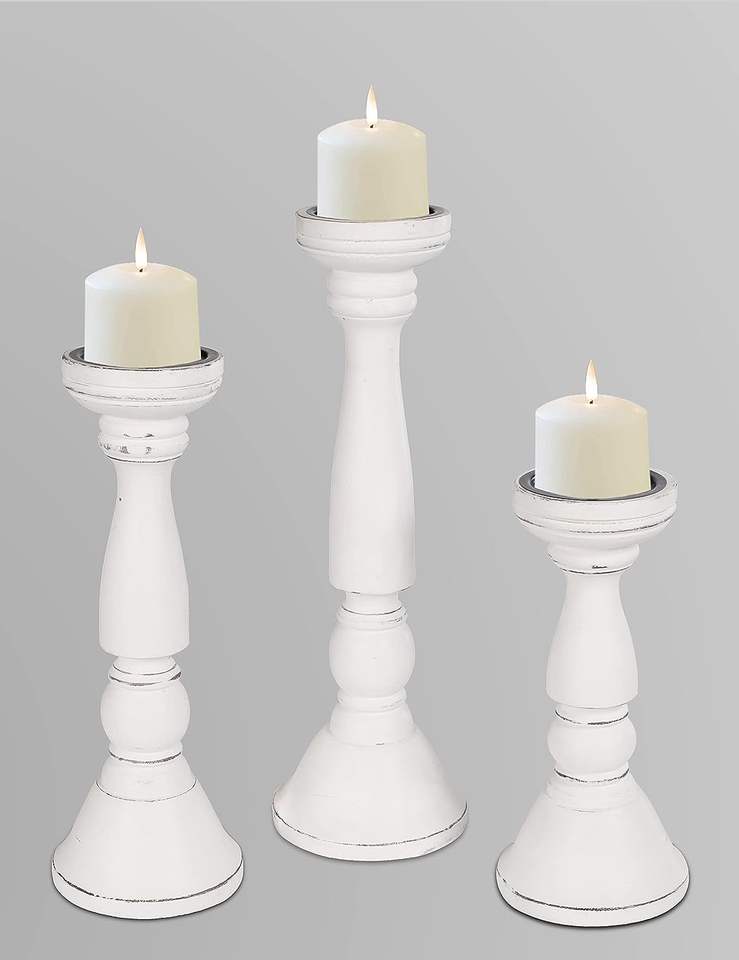 Candle Holder Wood White Tall Candle Set of 3 Wood Pillar Candle Holder Height (16+14+12) inch White Antique
