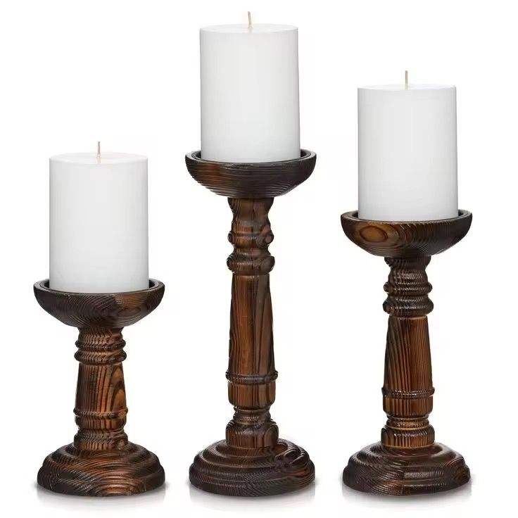 Candle Holders for Pillar Mango Wood Candle Stand - Farmhouse Wooden Candle Holders Pillar
