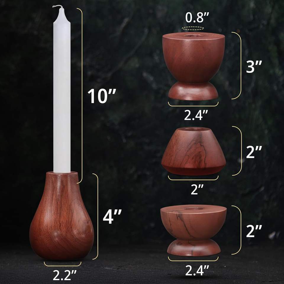 Candles w/Wooden Candlestick Holders (4 pc) - 10-Hour Burn Time White Candles - Mango Wood Natural Candle Holder & Paraffin Wax