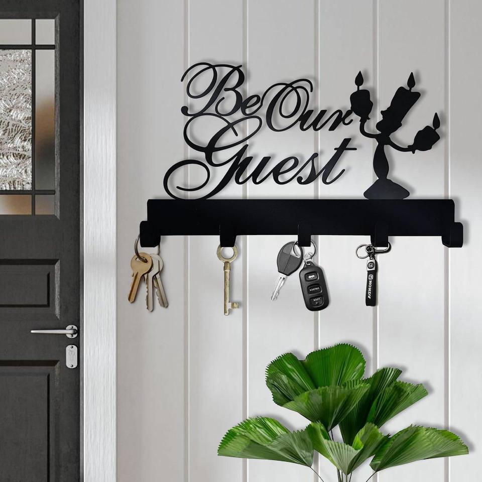 Candlestick-Shaped Key Hook Wrought Iron Black Wall-Mounted Holiday Candle Row Hook Beauty And The Beast Custom Wall Hanging