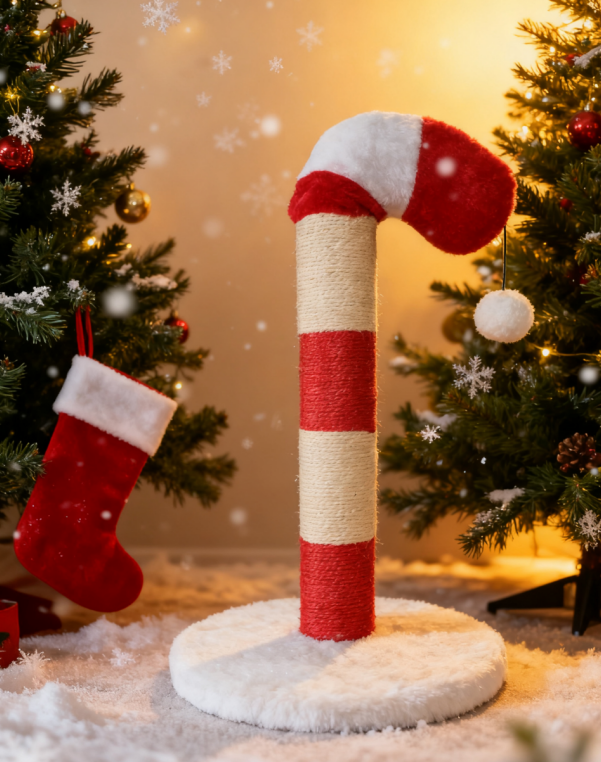 Candy Cane Cat Paw Scratching Toy Interactive Plush Toy Durable Chew for Kittens Adult Cats, Festive Cat Entertainment Toy