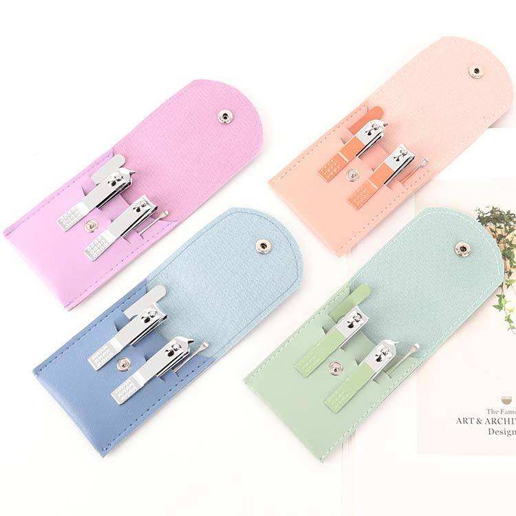 Candy Color 4Pcs Stainless Steel Nail Cutter & Clippers Kit with Pu Leather Bag for Pedicure and Manicure High Quality