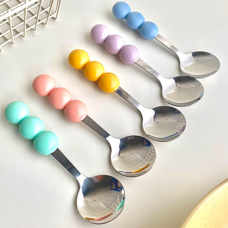 Candy Spoon Set 5Pc Stainless Steel Ball Handle Reusable Cake Utensil For Child Solid Color Spring 2025