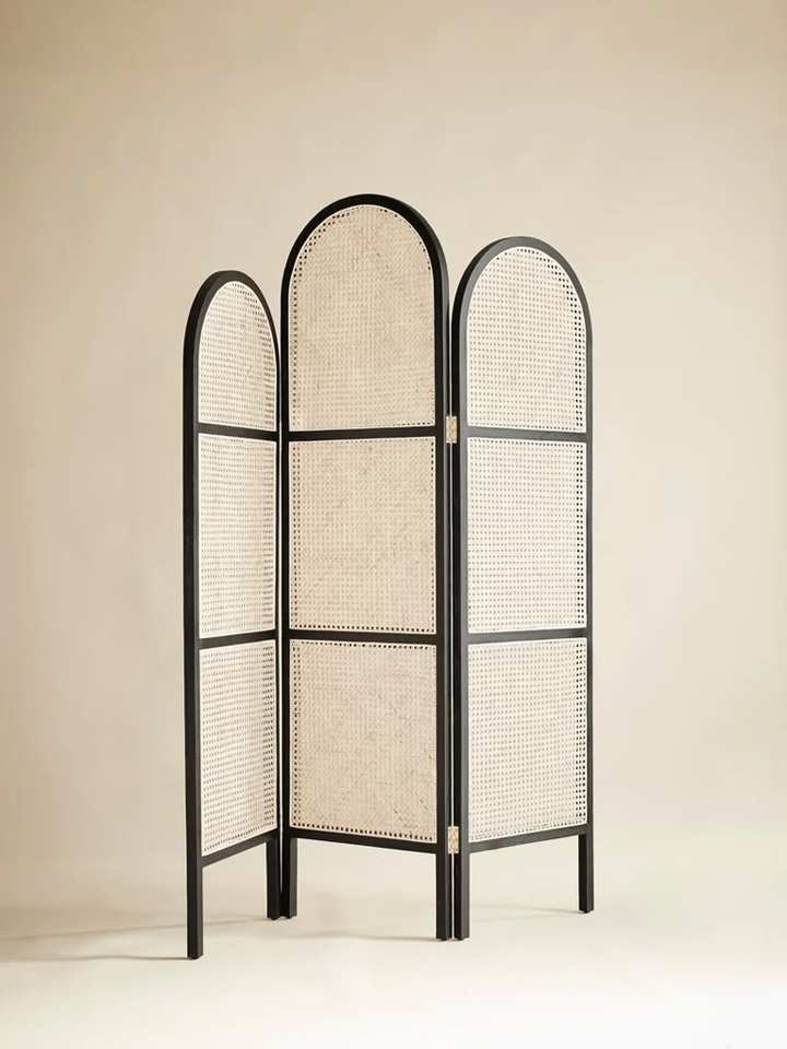Cane Room Divider with Black Frame Modern Folding Privacy Screen Elegant Partition Divider for Home and Office Use