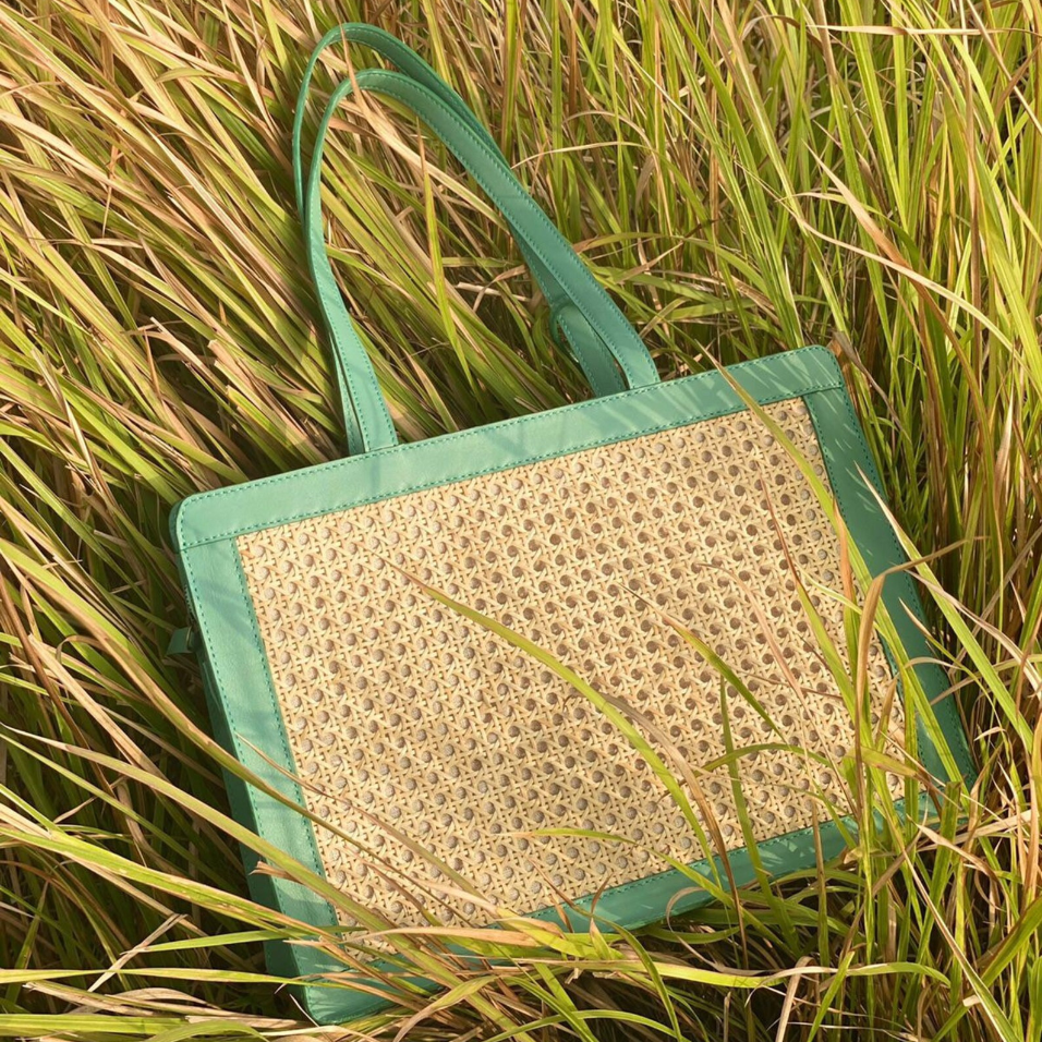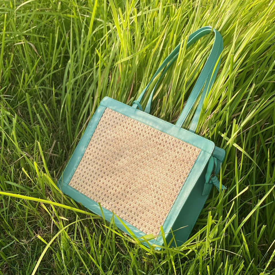 Cane and Leather Bag Women's Straw Large Capacity Shopping Tote Bag Travel Beach Bag with Lining OEM Made in Vietnam