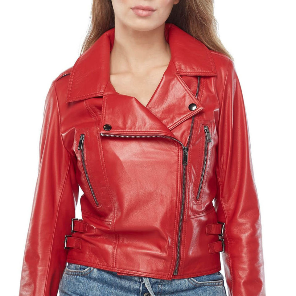 Canleo High Quality Red Sheepskin Bomber Leather Jacket Women OEM Customized Varsity Motorcycle Plus Size Women Leather Jacket