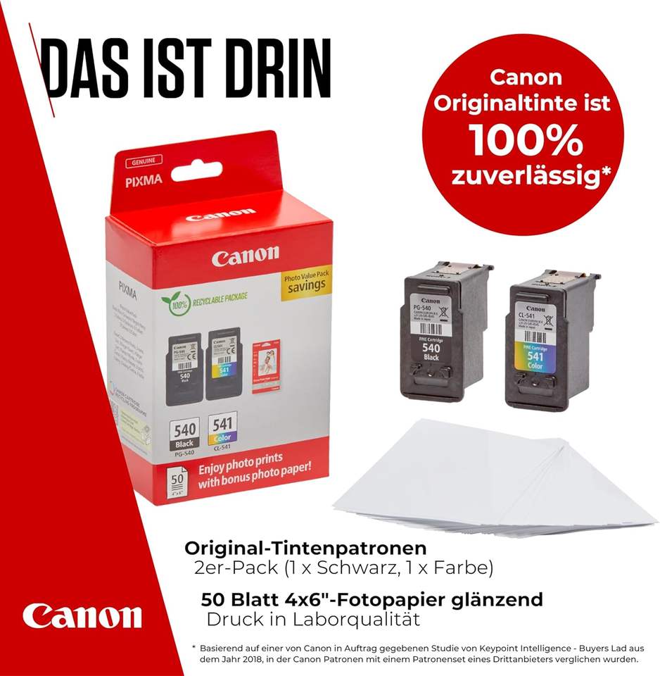 Canon PG-540 / CL-541 Genuine Ink Cartridges, Pack of 2 (1 x Black, 1 x Colour), Includes 50 sheets of 4x6 Canon Photo Paper