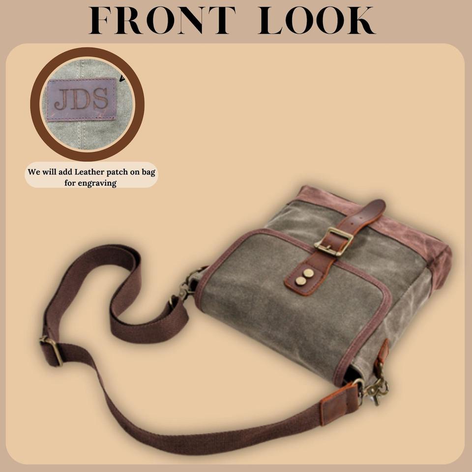 Canvas Bag Sling Crossbody Men Shoulder Leather Messenger Travel Gift For Him Her LCSB-0002