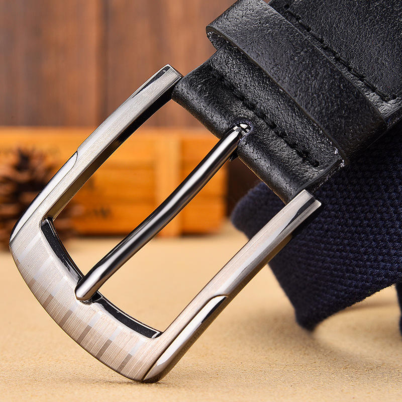 Casual Dress Designer Belt for Men Woven Canvas and PU with Wide Buckle Fashionable Genuine Leather From Pakistan