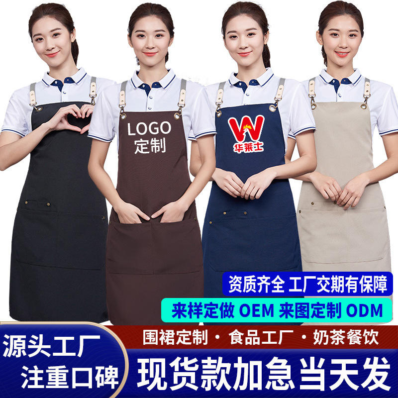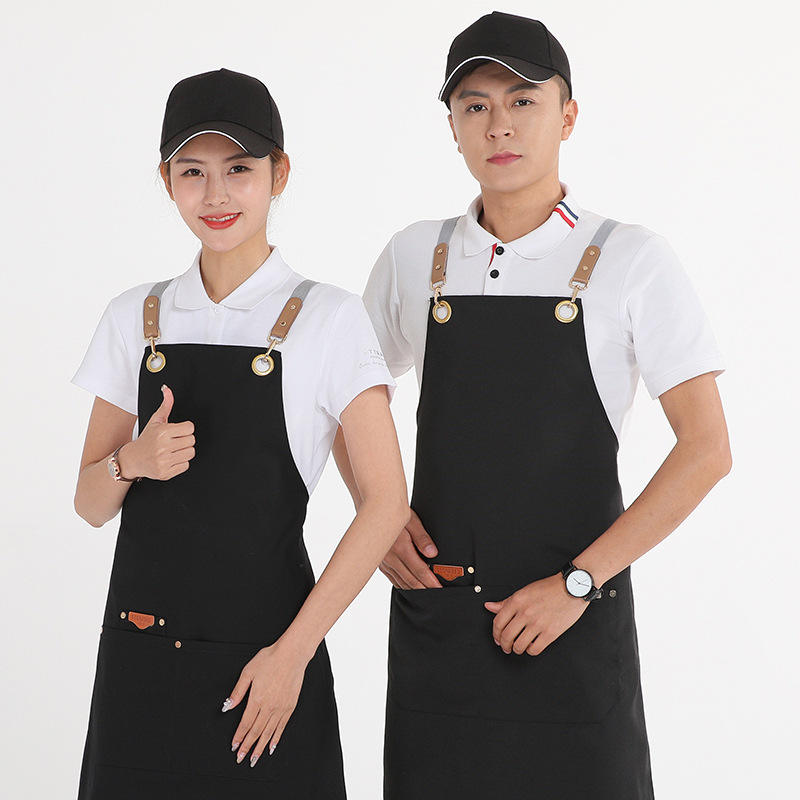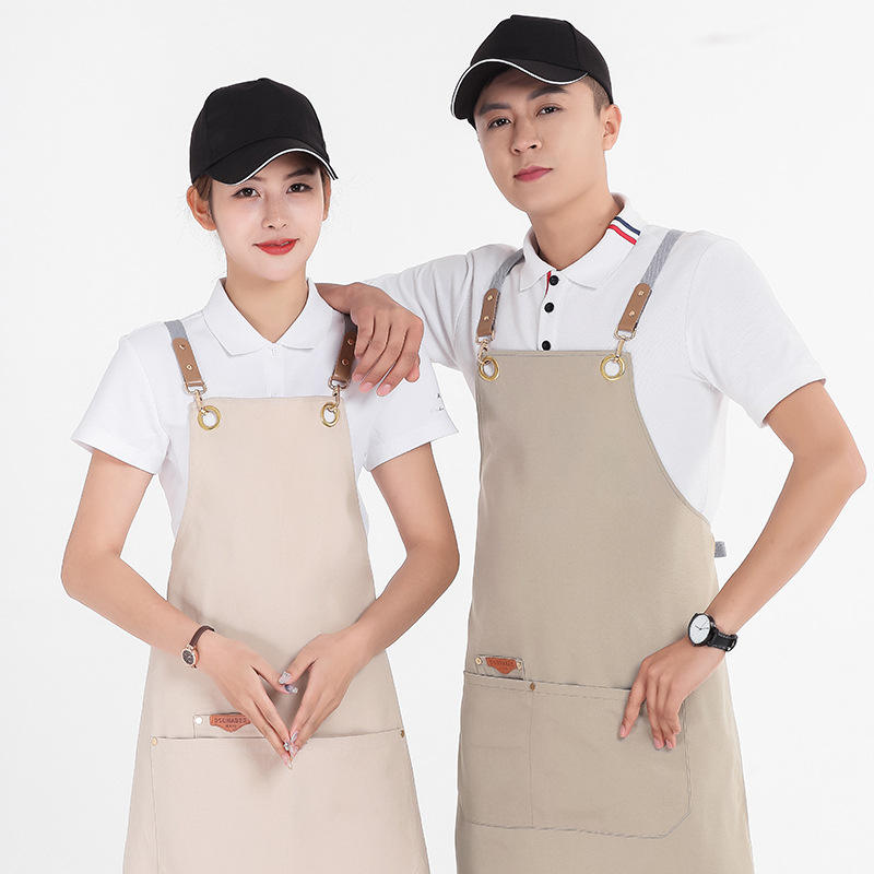 Canvas Cross-Strap Aprons Coffee Color Stain Resistant For Barbecue Restaurant Workwear