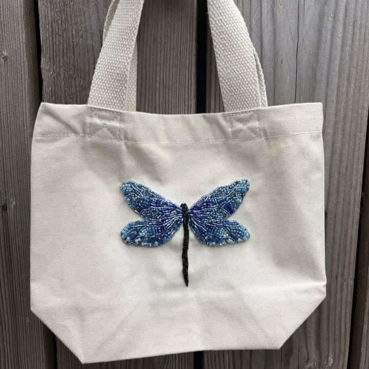 Canvas Handbag Cotton Fabric Grocery Shopping Sack Beaded Pattern School Book Carrier Daily Travel Small Tote Purse Bag
