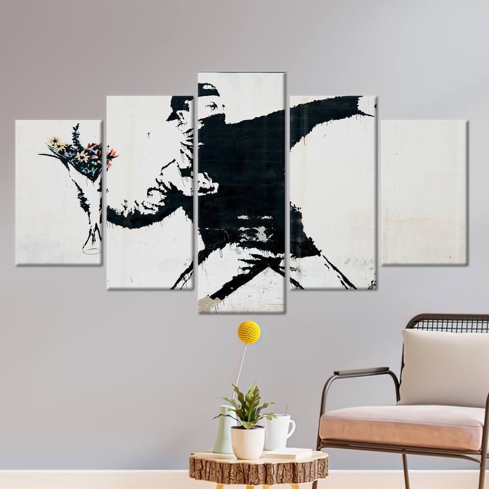 Canvas Print: Banksy Flowers Graffiti Art - Modern Wall Decor,SET OF 5 MIX CANVAS
