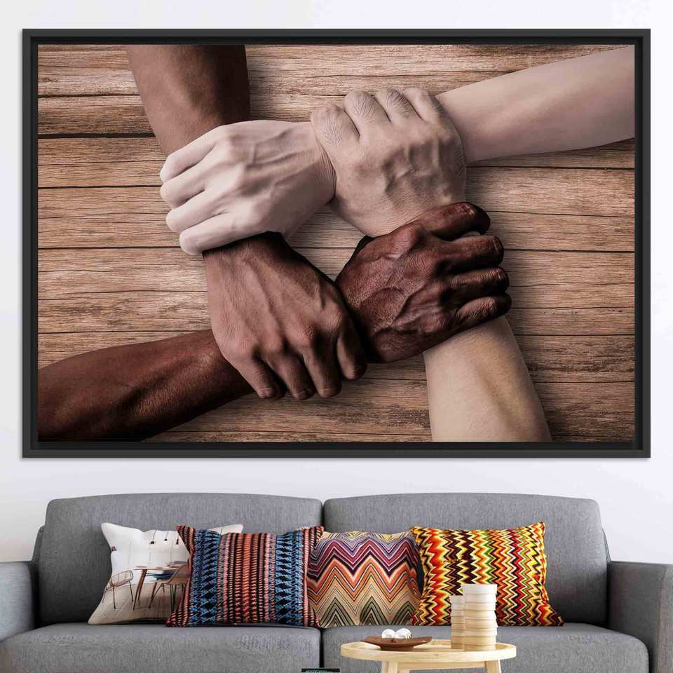 Canvas Print: Inspiring Teamwork Artwork in Vibrant Colors,BLACK FRAMED CANVAS