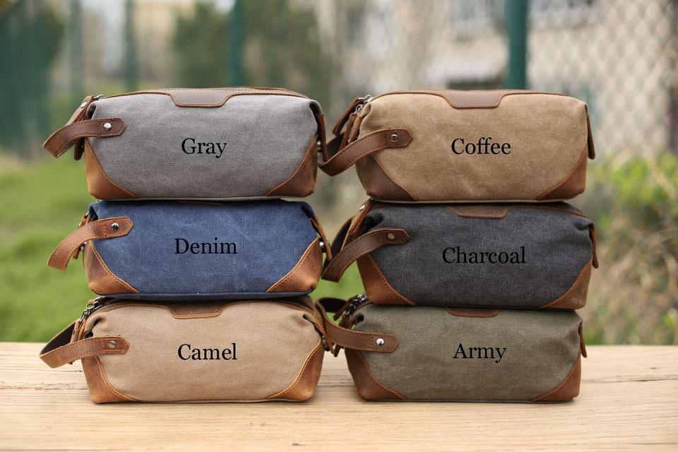 Canvas and Leather Dopp Kit Custom Toiletry Bag Usher Gift Best Man Proposal Groomsmen Gift LCTB-0007F