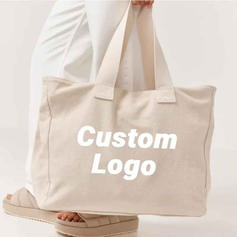 Canvas tote with zipper made of 100% cotton for Daily Shopping & Travel with Custom Logo & Size